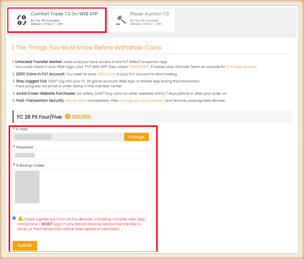 يمكنك تكرار هذه العملية لسحب المزيد من العملات عبر Player Auction 7.0.